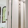 Mit den weißen colorierten Glaswänden wurde das Aufzugsdesign unauffällig dem Stil der Villa angepasst; die Türen verfügen über eine feinstrukturierte Pulverlackierung.