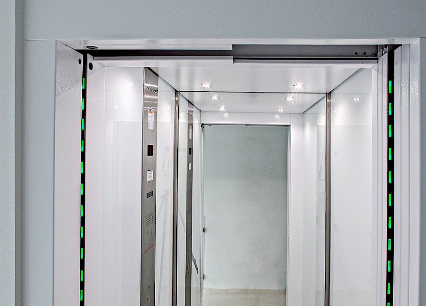 Dezentes Aufzugsdesign mit weißen colorierten Glaswänden