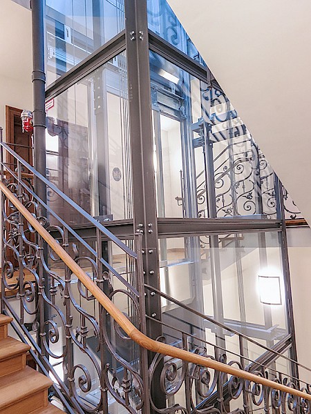 Einbau einer Aufzugsanlage in ein komplett umgebautes Gebäude, dem Einen oder Anderen in München als Riefler-Klinik bekannt.
