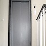 - Austausch der alten Drehtüren gegen benutzerfreundliche Schiebetüren mit kratzfester Pulverbeschichtung, im Farbton passend zum Treppenhaus