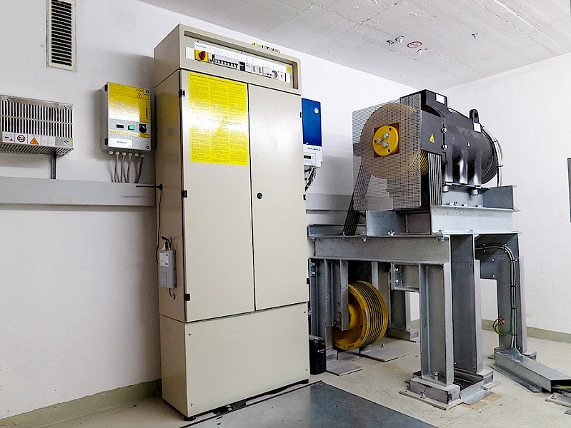 - Erneuerung des Antriebs inkl. der Steuerung gegen einen energiesparenden, extrem laufruhigen Gearless-Antrieb in Verbindung mit modernster Steuerungstechnik