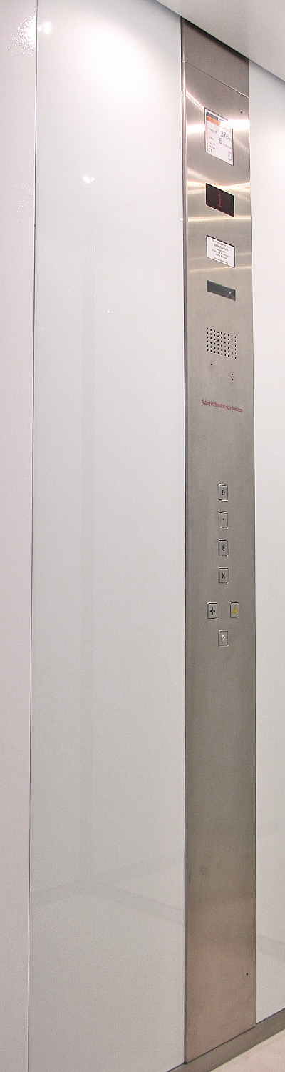 Dezentes Aufzugsdesign mit weißen colorierten Glaswänden