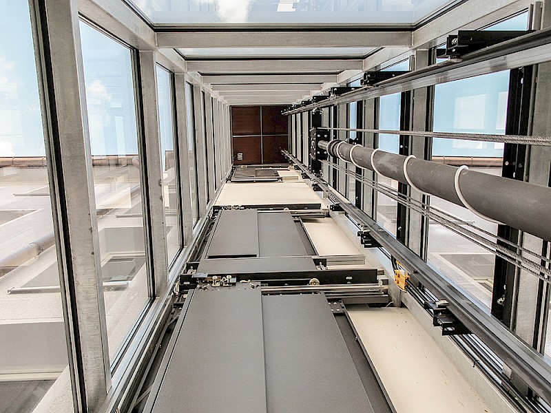 Die Schachttüren in hochwertiger, pulverbeschichteter Ausführung, wurden im Farbton passend zum Schachtgerüst gewählt.